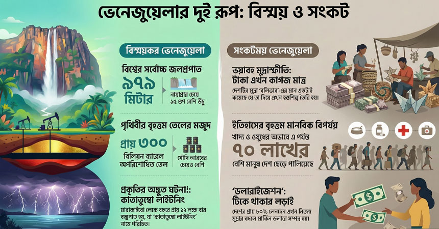 ভেনেজুয়েলা আমাদের শেখায় যে, কেবল প্রাকৃতিক সম্পদ থাকলেই একটি দেশ সুখী হয় না, তার জন্য প্রয়োজন সঠিক নেতৃত্ব ও অর্থনৈতিক পরিকল্পনা। এক সময়ের ‘ল্যাটিন আমেরিকার স্বর্গ’ আজ কেবল টিকে থাকার লড়াইয়ে ব্যস্ত। তবে এত কষ্টের মাঝেও ভেনেজুয়েলার মানুষ তাদের গান, নাচ আর হাসিমুখে আগামীর স্বপ্ন দেখতে ভোলে না।