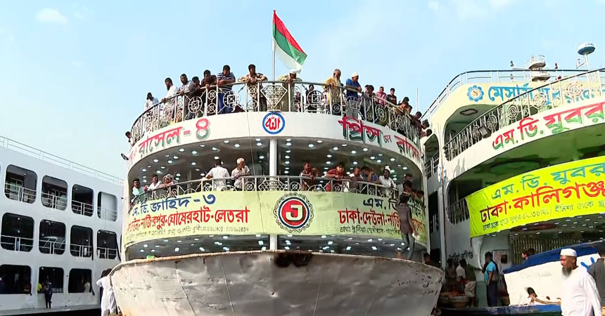 লঞ্চে বাড়ি ফিরছেন ঘরমুখো মানুষ |ছবি: এখন টিভি
