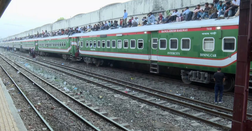 নিষেধাজ্ঞা থাকলেও ট্রেনের ছাদে চড়ে যাচ্ছেন মানুষ |ছবি: এখন টিভি