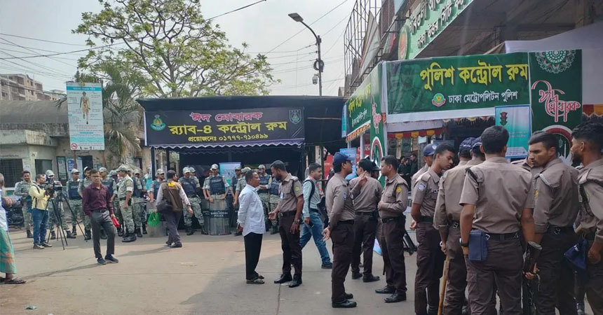 ঈদযাত্রা নির্বিঘ্ন করতে রেলস্টেশন, বাস টার্মিনাল ও লঞ্চঘাটে আইনশৃঙ্খলা বাহিনীর উপস্থিতি জোরদার করা হয়েছে। র‌্যাব, পুলিশ, নৌ-পুলিশসহ বিভিন্ন সংস্থা সমন্বিতভাবে দায়িত্ব পালন করছে। ছিনতাই ও হয়রানি ঠেকাতে অস্থায়ী ক্যাম্প ও নিয়ন্ত্রণকক্ষ চালু রাখা হয়েছে।