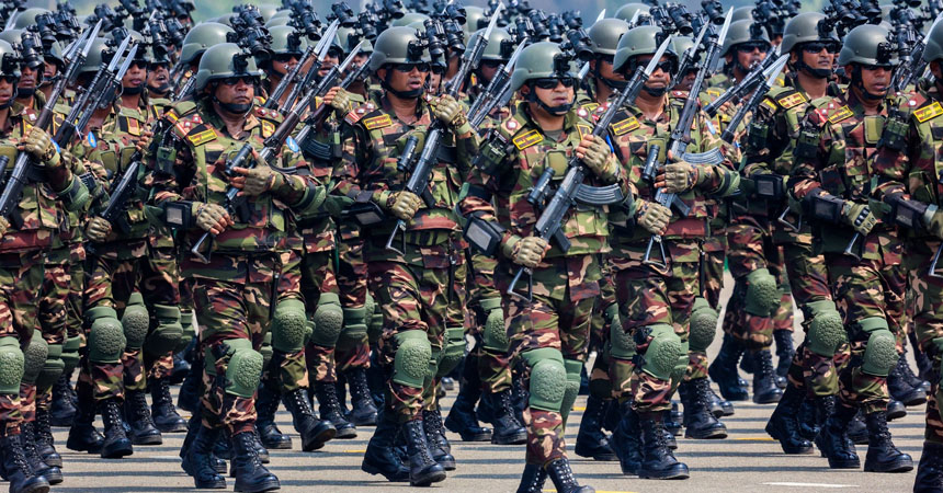 আকাশে উড়ছে অত্যাধুনিক যুদ্ধবিমান মিগ-২৯। নির্ভুল নিশানায় আঘাত হানছে শত্রু শিবিরে। তাকে সঙ্গ দিচ্ছে অন্যান্য সব যুদ্ধবিমান। সঙ্গে পাল্লা দিয়ে লড়ে যাচ্ছে সেনাবাহিনীর হেলিকপ্টার ইউনিট। এমন দৃশ্য দেখে মনে হবে এ যেন সত্যিকারের যুদ্ধ। মহান স্বাধীনতা দিবসের কুচকাওয়াজে এভাবেই বাংলাদেশের সামরিক সক্ষমতার প্রকাশ করে সম্মিলিত সশস্ত্র বাহিনী।